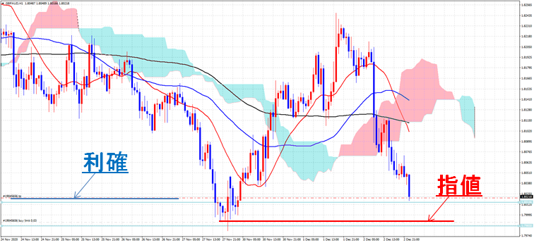 チャートを見た瞬間!思わずガッツポーズをしてしまいました。狙い通り、反発上昇しています!っと、おやおや…。指値まで下降せずに反発しておりましたw。なんとw。IFO注文あるあるですねw。しかし、値動きは思惑通りに動いてくれたので、今回はヨシとしましょう(/ω\)