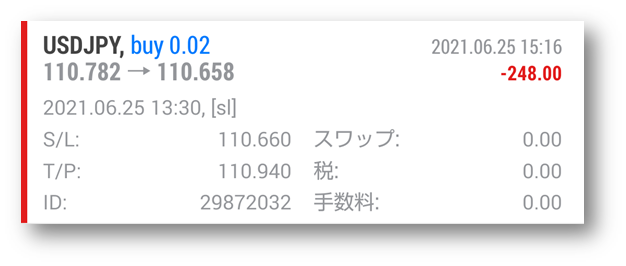 でも、今回良かった点は、損切をしっかりと設定していたところです。設定していなければもっと大きな損失になっていました。